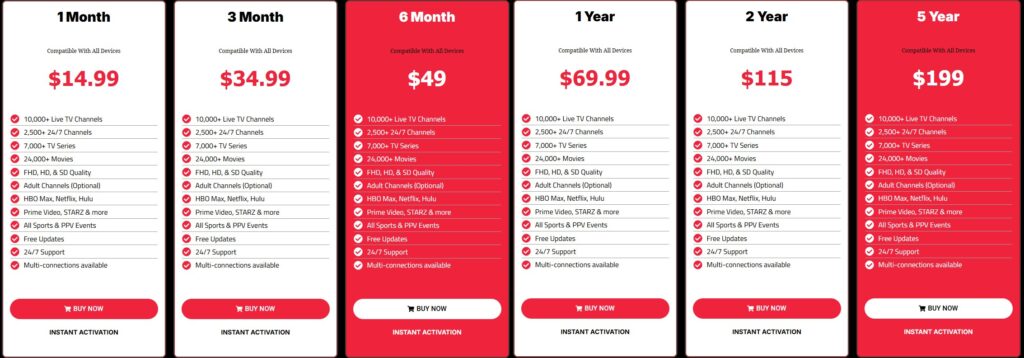 BrightSky IPTV offers several subscription options designed to fit different budgets. Longer plans usually offer better value over time.