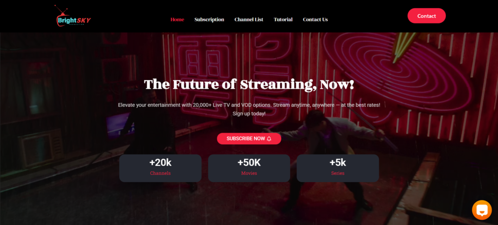 BrightSky IPTV is an internet-based television streaming service that provides access to live TV channels, movies, TV series, sports, and pay-per-view events. Instead of relying on cable or satellite connections, it streams content directly over the internet using IPTV technology. This allows users to enjoy entertainment across multiple devices without long-term contracts or expensive hardware.