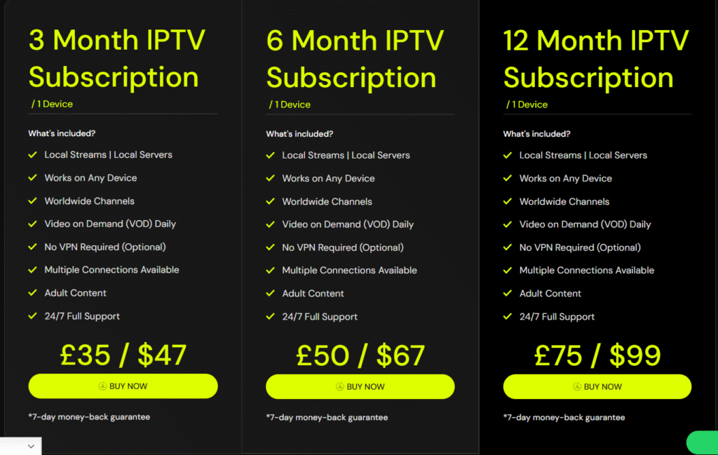 Here is a basic example of IPTV-style pricing (exact figures may vary depending on the provider’s own offer):