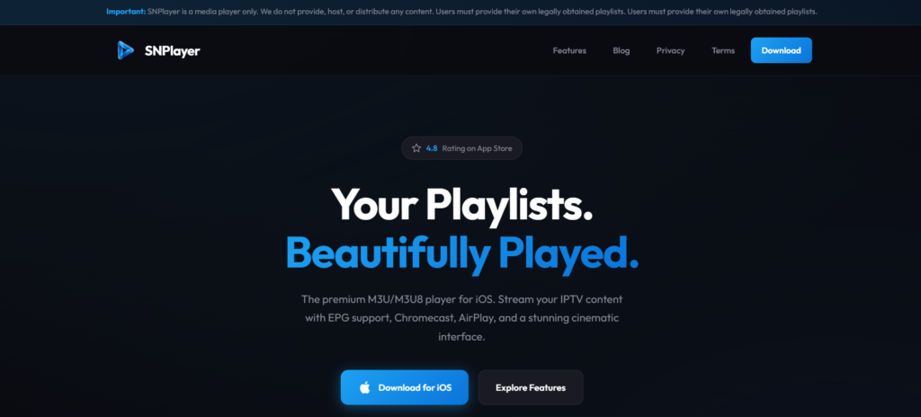 Discover SNPlayer, a modern M3U and M3U8 playlist player for iOS. Learn about its features, installation steps, pricing details, and the best alternatives.