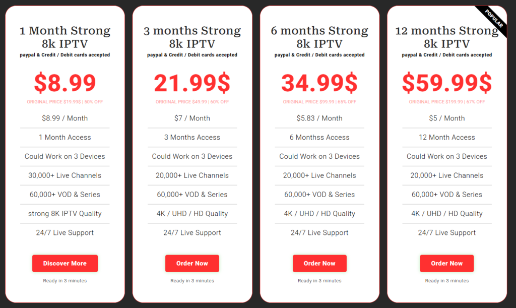 StrongChannels is suited for viewers who want a broad channel lineup and VOD at a low monthly cost and don’t mind using IPTV player apps. As with any IPTV service, experience depends on internet quality, app choice, and regional content availability.
