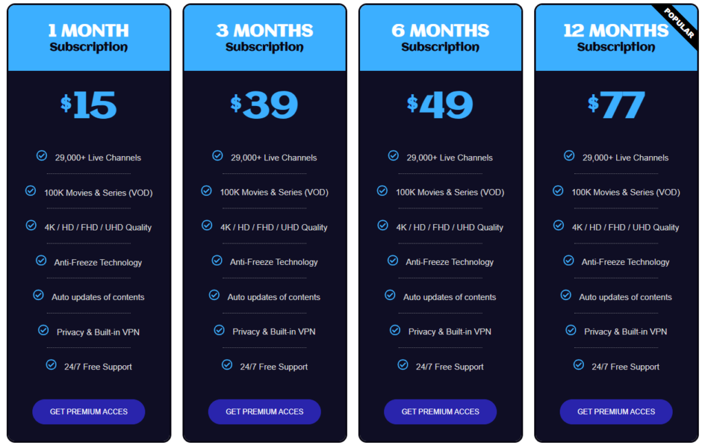 Zyminex IPTV offers multiple subscription plans, usually including: